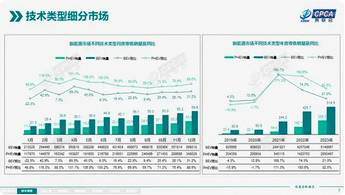在目前的新能源汽车市场中,纯电车型的规模更大,这使得“完善补能体验”的需求更加迫切。在2023年,我国的新能源汽车销量达到了949.5万辆,其中纯电车型的销量远高于混动车型,约是后者的2倍。放眼全球市场中,纯电车型在整个汽车市场中的销量占比已达到11.5%,同样高于混动车型。所以,电动汽车都必须提高补能效率。