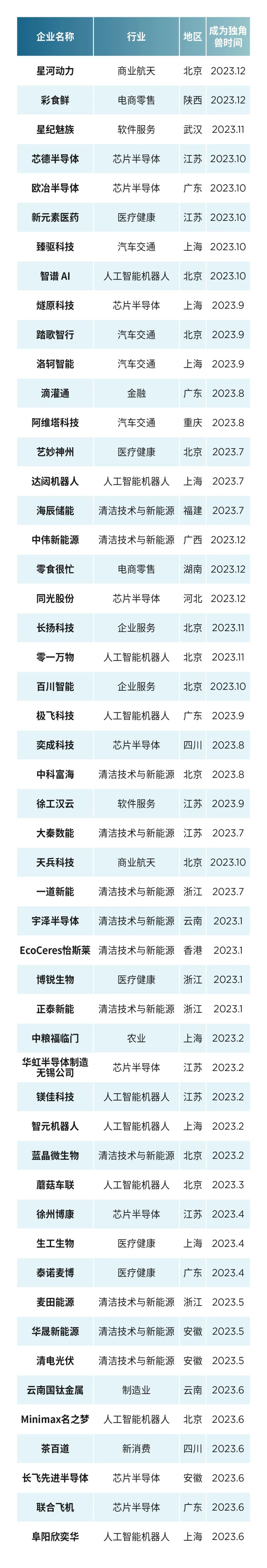 2023中国新晋独角兽名单: