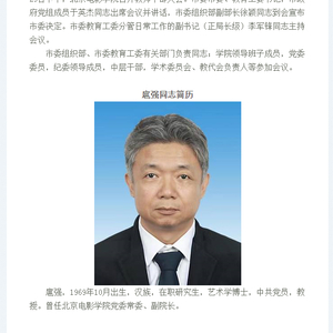 据北京电影学院官方网站3月1日消息,日前,北京市委批准:扈强同志任北京电影学院党委副书记、院长。2月29日下午,北京电影学院召开教师干部大会。市委常委、教育工委书记,市政府党组成员于英杰同志出席会议并讲话,市委组织部副部长徐颖同志到会宣布市委决定。市委教育工委分管日常工作的副书记(正局长级)李军锋同志主持会议。