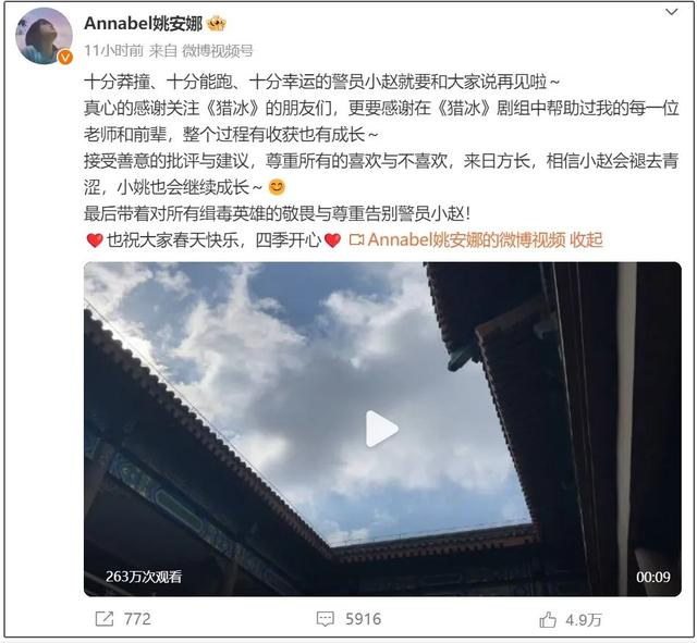3月1日,姚安娜(@Annabel姚安娜 )在社交媒体发文表示:“真心的感谢关注《猎冰》的朋友们,更要感谢在《猎冰》剧组中帮助过我的每一位老师和前辈,整个过程有收获也有成长。接受善意的批评与建议,尊重所有的喜欢与不喜欢,来日方长,相信小赵会褪去青涩,小姚也会继续成长。”