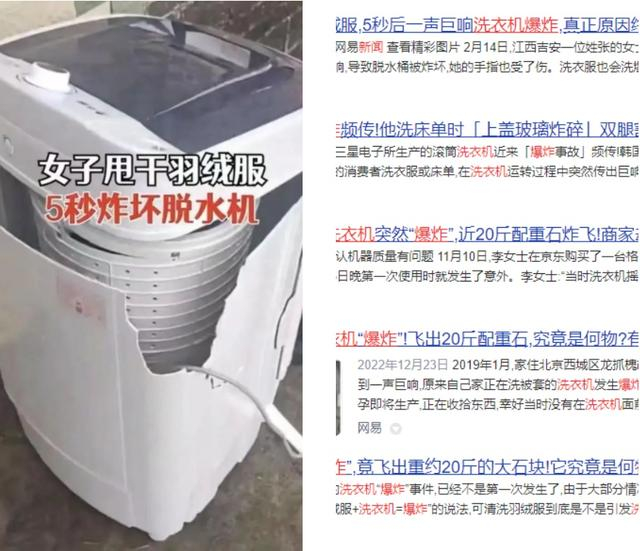 近年来机洗羽绒服“爆炸”的新闻层出不穷,如果衣服所含空气量较大,搅拌速度又过快,那么空气“突围”时可能会破坏整件衣服,让人以为羽绒服“爆炸”了。