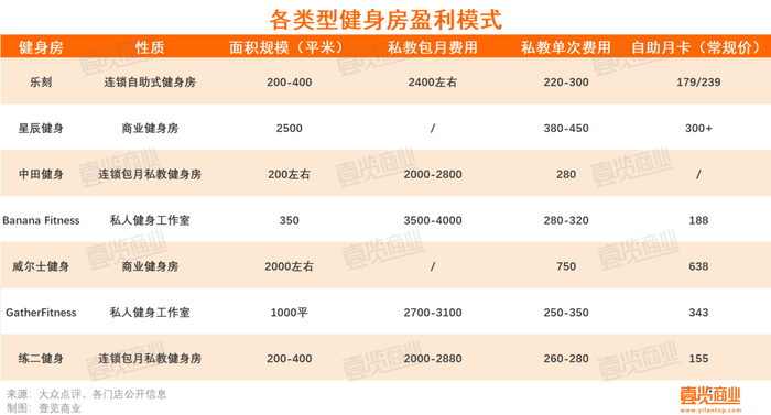 壹览商业统计十余个不同类别、规模的健身馆发现,整个健身行业,除了商业健身房,都在考虑“私教包月”化。