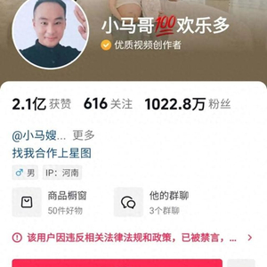 “小马哥”的视频多以家庭内容为主,更新频率为4—5天,但其最新一期视频发布于2024年2月19日,已有十余天未更新。根据平台提示,目前这一账号因违反相关法律法规和政策,已被禁言。