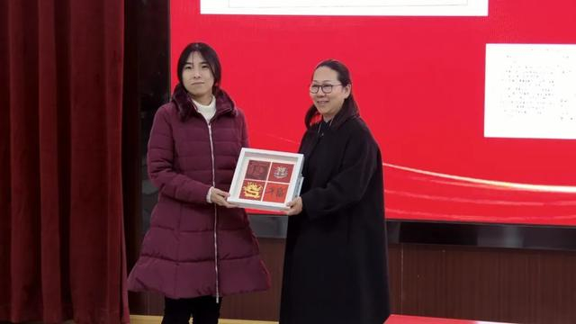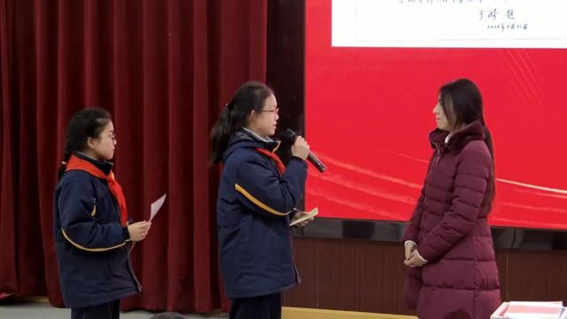 这份寄语手稿不仅是对新云台中学的殷切期望,更是对每一位教育工作者的鼓舞和鞭策。欣喜中,学校教师和学生也为于漪老师送上精心准备的礼物。六(1)班的王涵代表全体学生为于漪奶奶写了一封信。六(3)班的魏子珃早已熟知于漪奶奶的教育故事,她创作了一首诗送给于奶奶。校长王晓云也代表新云台中学将学校的特色课程成果——由衍纸、书法、剪纸、藏书票等工艺制作的龙年主题作品,通过黄音老师赠送给于漪老师。这些作品凝聚了师生们的智慧和心血,是学校教育教学成果的缩影,全校教师在新云台中学精心收藏的2007年出版的于漪回忆录《岁月如歌》上认真签上自己的名字,向于漪老师表达了自己不变的教育初心。