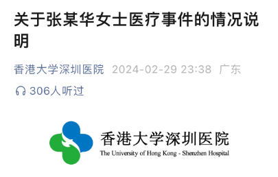 “香港大学深圳医院”微信公众号发布《关于张某华女士医疗事件的情况说明》。其中提到,事件发生后,医院对事件进行了全过程复盘和检视,承认诊疗过程存在不足,将持续改进医院管理和诊疗服务流程。全文如下: