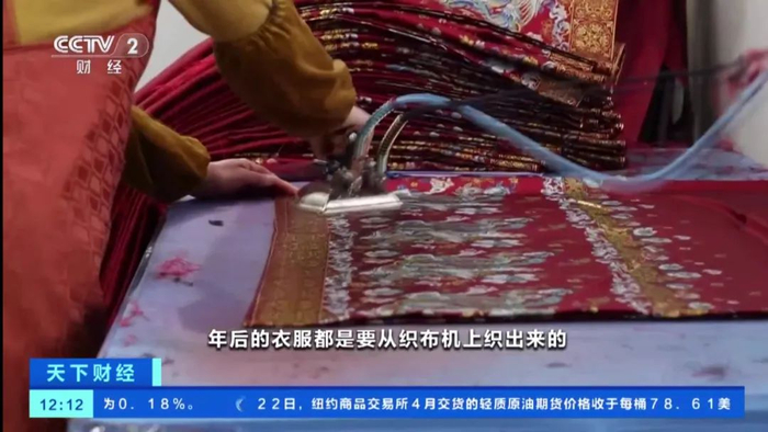 “像我们原创商家是不会使用成品面料的,我们的面料都是采购材料之后送去面料厂,面料厂根据我们的要求织出相应的图案,然后再送去加工厂压褶加工成型。”阿威提到,由于他们对面料商要求较高,可选的工厂不多,一般来说一台提花机器一天能织70米布左右,做成马面裙大约是25条,加上后道的加工环节,一批货的整个周期需要25天到30天不等。