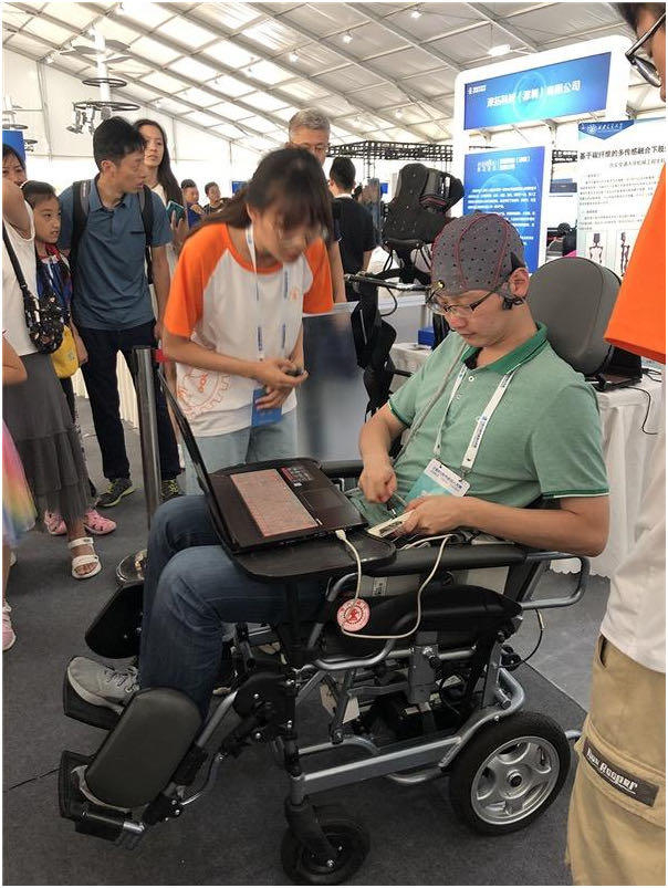 在我国2023年举行的第七届世界智能大会上,一个通过脑电波就可以控制行进的轮椅,吸引了大家的目光。在头上戴一个脑电帽,就能将大脑所产生的微弱脑电信号采集出来,然后结合算法,将大脑所产生的意图解码出来,控制轮椅行进的方向。