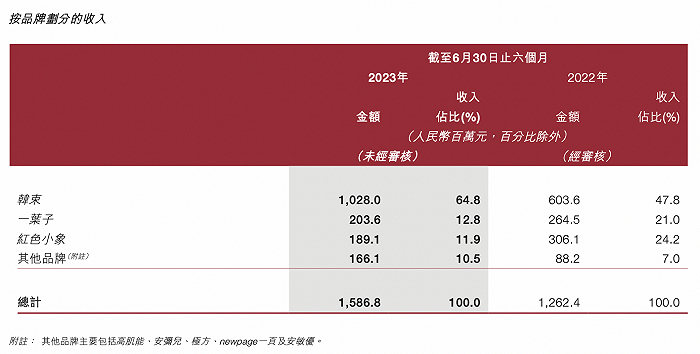 2023半年报显示,上美股份营收同比增长25.70%至15.86亿元,归母净利润同增54.52%至1.01亿元。其中,韩束收入高达10.28亿元,占总收入比重为64.8%,而一叶子、红色小象以及其他品牌的占比仅超一成。