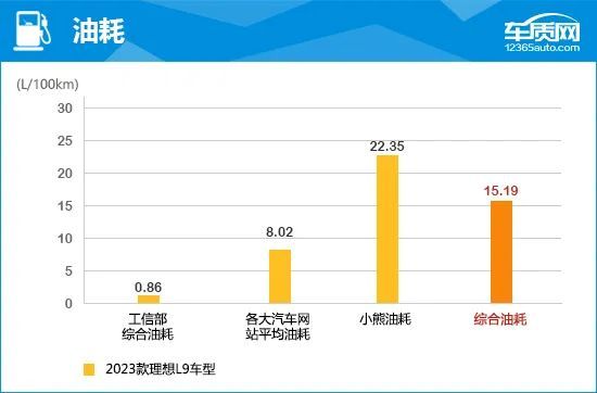 车质网综合各汽车垂直网站以及小熊油耗的统计数据,得出2023款理想L9的车主实际油耗为15.19L/100km,实际电耗为23.6kWh/100km(仅供参考)。