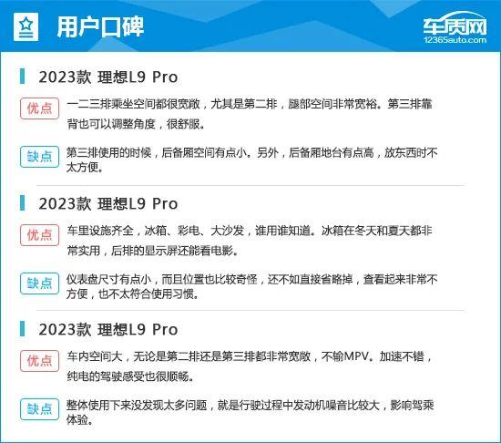 在用户口碑中,多数消费者对2023款理想L9的乘坐空间和座椅舒适性表示满意。不过,也有车主认为该车后备厢地台稍高,放东西不太方便。仪表盘尺寸以及位置设计不合理,有待优化。另外,行驶过程中发动机噪音比较大,影响驾驶体验。
