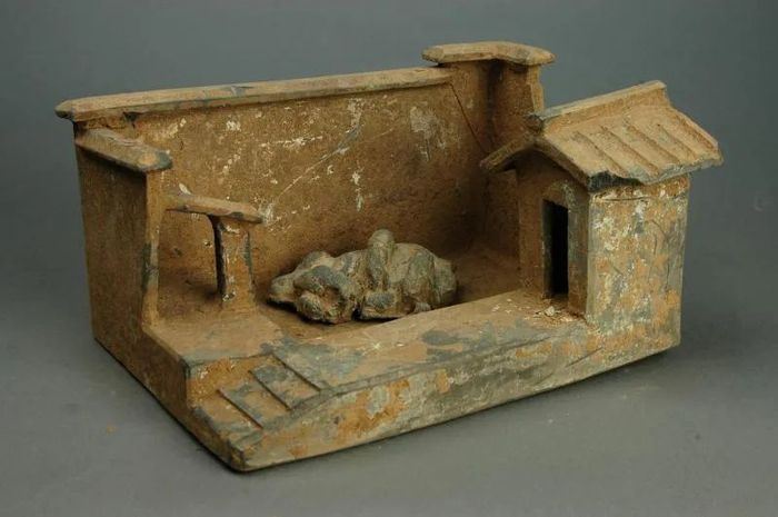 汉灰陶猪圈,2006年11月7日克井西许M1出土,现藏济源博物馆。陶圈中可见一只母猪,身上趴伏着数头小猪。