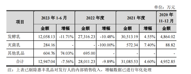 公司专注于低温发酵乳等产品研发的子公司惠丰乳品,从2022年起就因发酵乳收入降低导致营收下滑。菊乐股份表示,发酵乳收入降低又是由销量降低和单价降低这两个因素共同造成。