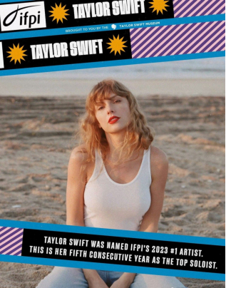 2021年,霉霉获得了全英音乐奖的至高荣誉“全球偶像奖”;2022年,纽约大学决定,授予她艺术荣誉博士称号。如今,她又登上2023年度IFPI主榜Global Artist Chart第1名......