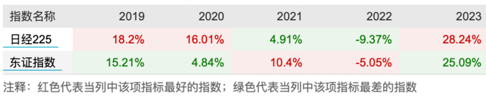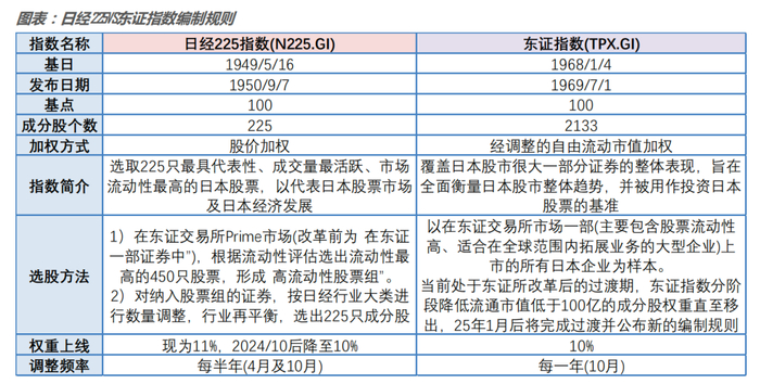 从长期收益和波动率看,由于权重集中,日经225指数比东证指数波动更大,涨幅和跌幅都更多。