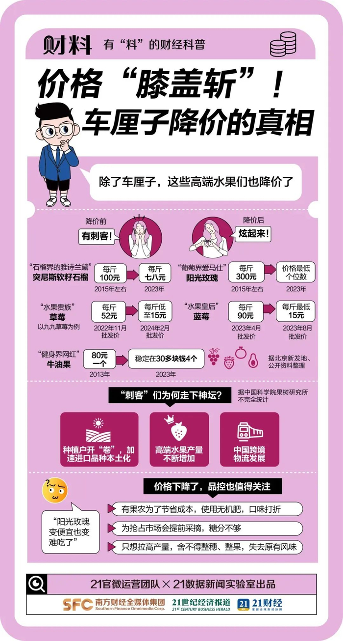 “水果季节性很强,有时候可能果品产季快结束了 ,价格也会回落。产季结束的时候,果品品质就没有那么好了,有时候价格下降也和品质下降相关。”有水果资深观察人士说。