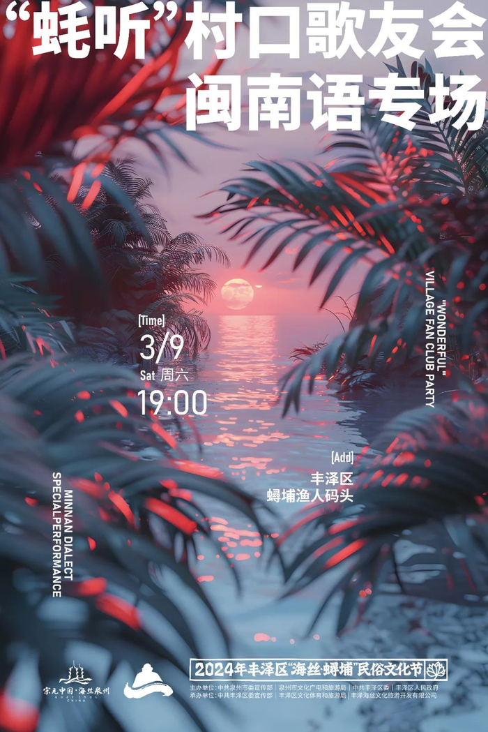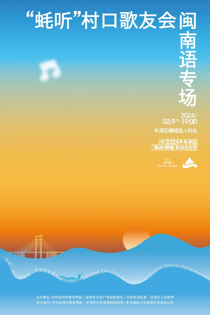 总有一段旋律,能抚慰心灵;总有一句歌词,能道破心境。学闽南话,唱闽南歌,可以是“三分天注定 七分靠打拼 爱拼才会赢”的奋斗观,可以是“讲什么 我就像天上的仙女,讲什么 我就像古早的西施”的情感故事,也可以是“走走咱厝的街巷 看看咱厝的人 这些年来是否变了模样”的故乡记忆。本次歌友会上,总有一首歌是你脑海中过往熟悉的旋律,“蚝听”村口歌友会邀您一起大声唱!