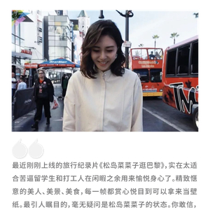 尤其是跟随「日剧女王」松岛菜菜子明媚的笑容、轻盈的脚步,探索巴黎街头巷尾中那些美好的事物。