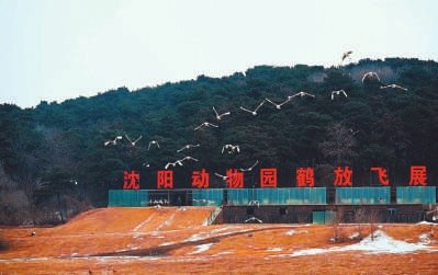 沈阳森林动物园是我国丹顶鹤人工繁育基地,常年都有丹顶鹤的飞翔展示,每天伴随着《飞得更高》的旋律响起,成群的亚成体丹顶鹤会在饲养员的哨声指挥下,扑棱着翅膀仙气十足地飞出集体宿舍,掠过草坪、越过人工湖然后齐刷刷地飞向蓝天。在动感的乐律中,这些同大熊猫一样珍贵的国家一级保护动物像教科书里描绘的那样,一会儿排成人字、一会儿排成一字……
