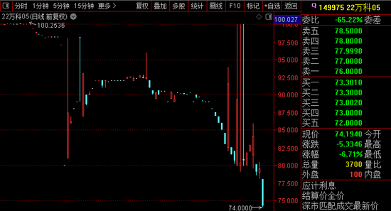 最近几天万科的债券下跌比较多。比如这张22万科05,2027年7月8日到期的债,今天价格跌到了74.2元。如果未来3年半万科不爆雷,能拿到3.2%/年的利息,还能赚24.8元本金,年化收益率13%。
