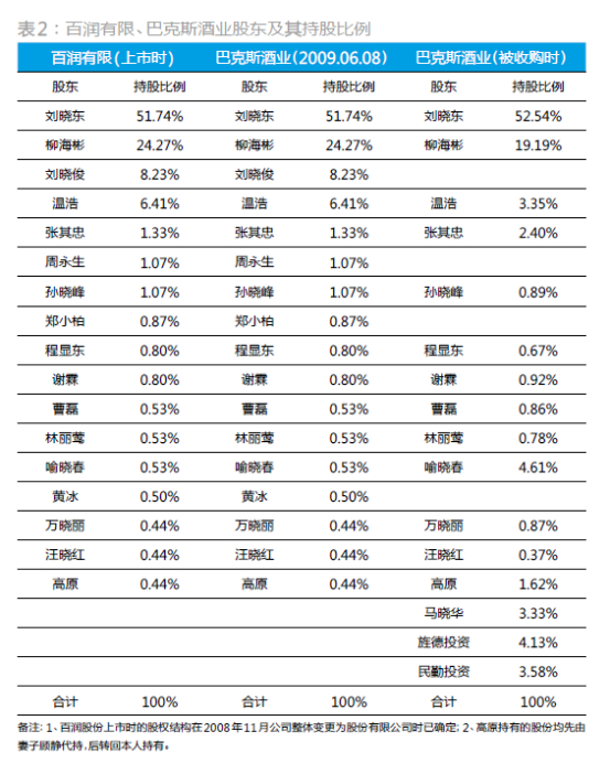 2009年6月8日,百润有限将巴克斯酒业100%股权以100元的价格转让给刘晓东等17人。