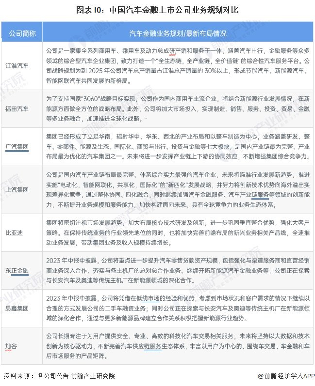 5、汽车金融行业上市公司汽车金融业务规划对比