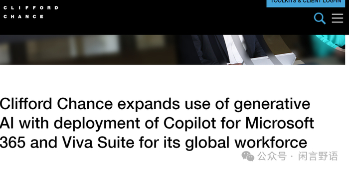 近日,魔术圈律所(Magic Circle)之一的高伟绅(Clifford Chance)正式宣布在该律所全球范围内启用一套人工智能产品。据报道,这套人工智能产品为该律所与微软合作,在Microsoft 365等软件中嵌入人工智能应用工具(如Copilot),旨在协助完成一系列律所日常工作,包括但不限于会议及任务管理、邮件起草、文档总结等。这也使得该律所成为当前全球范围内少有的大范围配置Copilot等人工智能应用的国际化组织。