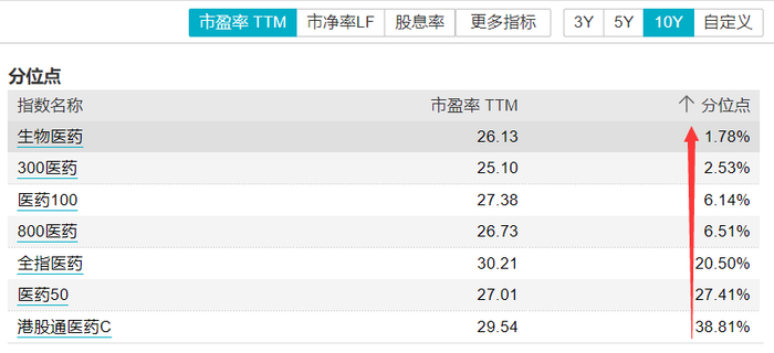 从最新估值数据来看,生物医药指数、300医药、医药100和800医药的当前市盈率均在28倍以下,均位居近10年估值百分位10%以下的低估区间,投资性价比非常高。