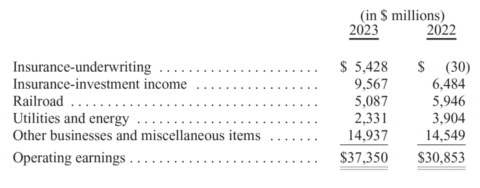 在2023年5月6日伯克希尔的年度聚会上,我介绍了当天一早发布的第一季度业绩报告。随后,我简短地总结了全年的展望: