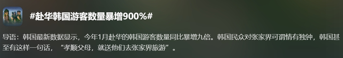 一则“赴华韩国游客数量暴增900%”的新闻