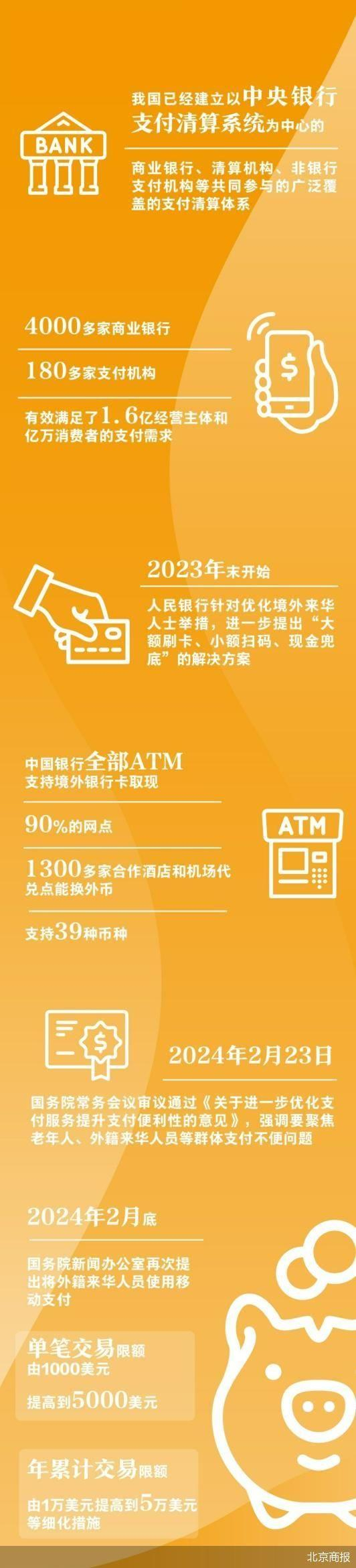 自2023年末开始,随着我国扩大免签覆盖范围、放宽出入境签证条件等政策接连出炉,人民银行针对优化境外来华人士举措,进一步提出“大额刷卡、小额扫码、现金兜底”的解决方案。