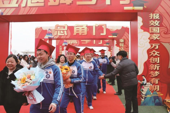 在校领导与教师的带领下,学子们昂首挺胸、意气风发、雄赳赳、气昂昂,跃过了决胜门,走向了属于他们的成功之路。江柯南