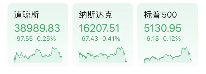 美东时间周一,美股持续上涨的势头暂歇,三大股指集体下跌。截至收盘,道指跌0.25%,纳指跌0.41%,标普500指数跌0.12%。