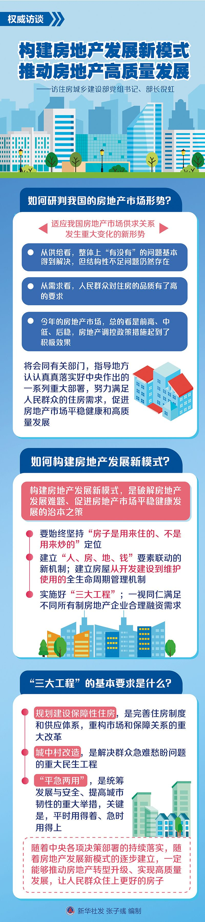 在坚持房子是用来住的、不是用来炒的定位下,房地产发展新模式是稳定当前市场、扭转供需错配发展困局的关键路径。构建房地产发展新模式,需要适应市场供求关系发生重大变化的新形势,推动商品房和保障房的“双轮驱动”,科学配置“人房地钱”等资源要素,把握中长期发展新方向,助力房地产行业高质量发展。
