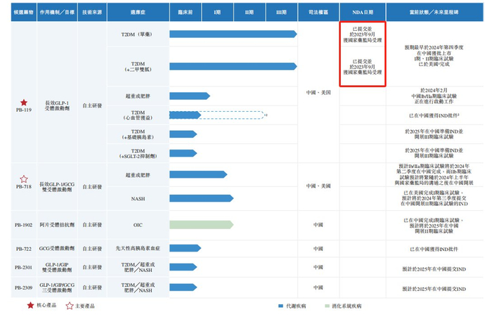 其中,PB-718用于治疗超重或肥胖、NASH的研究处于临床I期;PB-1902用于治疗OIC的研究也在临床I期,II期临床预计将在2025年才开展;PB-772的IND申请也于2023年5月份才刚获批。另外两款产品PB-2301、PB-2309则还仅处于临床前阶段。