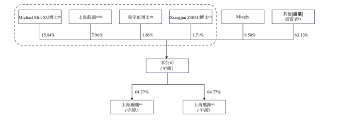 股转完成后,派格生物又完成一系列投资,截至最后实际可行日期,派格生物的注册资本为人民币3.67亿元。股东人数超过60人,第一大股东是徐敏,持股5808.19万股,持股比例15.84%。单一最大股东集团则由徐敏、Xiangjun ZHOU、徐宇虹及上海苏颉组成,合计持股27.37%,各方已于2021年订立一致行动方协议。