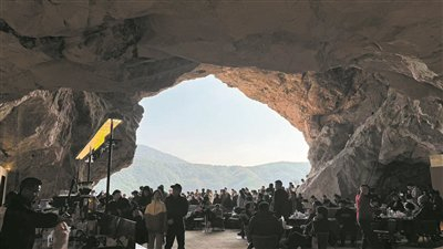 温州网讯 悬崖之上,和煦阳光投入拥有亿万年地质奇观的古洞。仰头是凹凸石壁,低头是陡峭崖壁,向远看,云雾缭绕、峰峦如聚,手中的咖啡温热微醺,香气弥漫……当都市人热衷的咖啡邂逅雁荡山世界地质公园的悬崖峭壁,就有了这样一幅新场景。