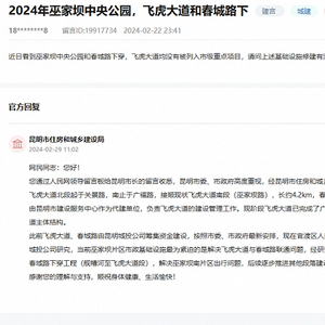 有网友通过人民网地方领导留言板咨询:巫家坝片区一些基础设施没有被列入市级重点项目,未来进展如何?对此,相关部门回复表示,片区市政基础设施最为紧迫的是解决飞虎大道与春城路联通问题,计划先解决巫家坝南片区出行问题。
