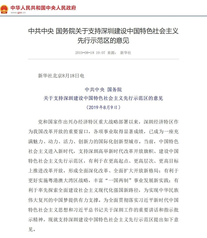 《中共中央 国务院关于支持深圳建设中国特色社会主义先行示范区的意见》发布,这是继建立经济特区后深圳迎来的又一重大历史机遇。