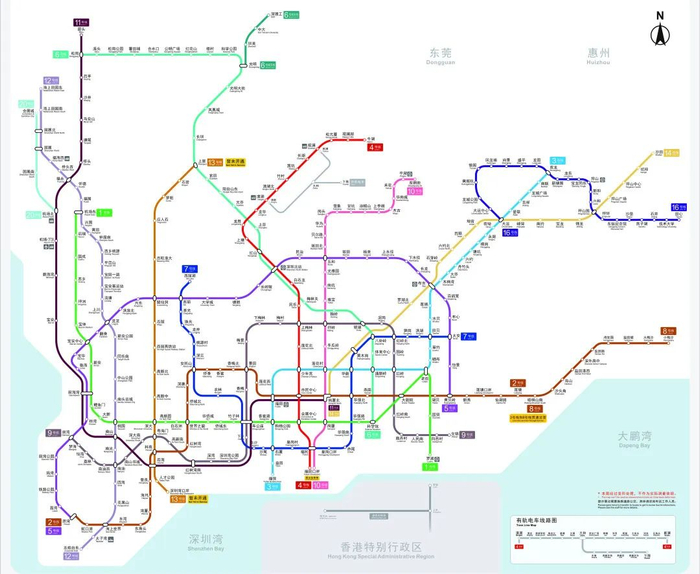 截至2023年底,深圳城市轨道交通运营里程达567.1km,共计车站共393个。