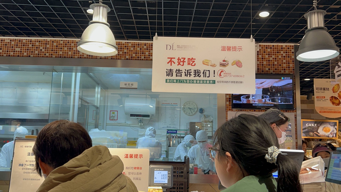 超市里的烘焙区,远远看到几个大字,“不好吃请告诉我们”。走近一看,底下一行字写着“我们将上门为您办理调退货服务”。