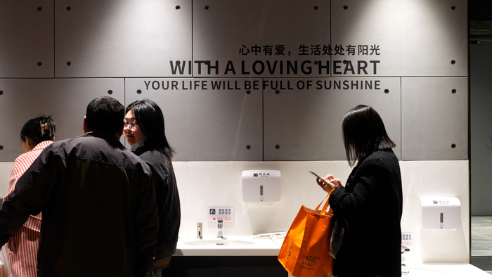 装潢布局显得“高大上”的天使城二楼,记者先去卫生间体验了一把。