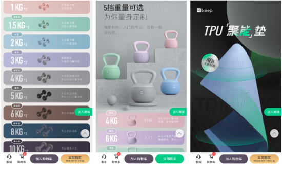 考虑到这样的需求,Keep 围绕着“舒适体验”、“专业高效”、“居家友好”、“调动情绪” 四大价值对产品矩阵进行重构,推出多彩沁塑哑铃、软胶壶铃等一系列创新产品,使用磨砂沁塑工艺对原有铸铁哑铃进行升级,不仅弹性材质外层让握感更细腻、舒适,同时提升防滑度能够贴合手掌弧度不易因脱手带来意外伤害。此外,不管哑铃的沁塑工艺还是壶铃的软胶搭配氮气填充,都能在女性用户运动时充分减弱落地的撞击和噪音,对地板友好也对家中的宠物、孩子更友好。