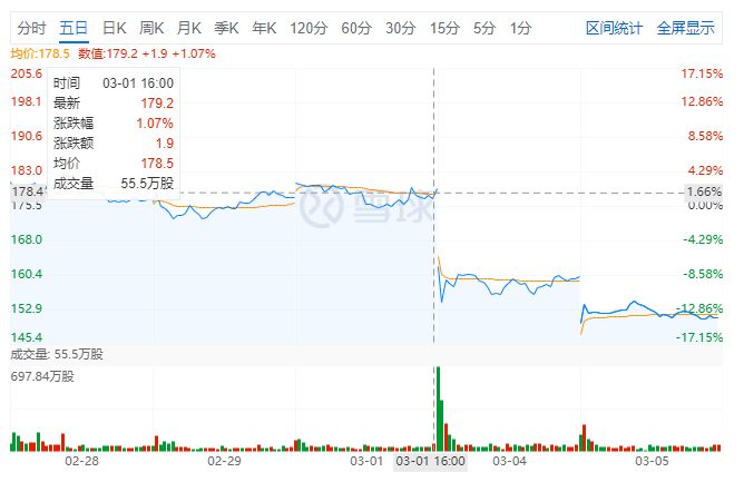 截至今日收盘,理想汽车的港股股价从3月1日的收盘价179.2港币/股,跌至152港币/股,跌幅高达15.1%。