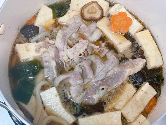 所见即所得,肥牛片肉大、肉较厚、肉较多,是第一印象。吃得出来肥牛片的品质在线。寿喜锅汤汁的味道香浓微甜,很地道。海带结、黑木耳、千叶豆腐,甚至乌冬面的口感,也跟下馆子吃到的基本没差别。要说唯一的问题,就是千叶豆腐过多,商家或可考虑增加其他素菜替代。