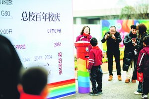 学生将“寄给未来的信”投递到象征希望与梦想的“未来邮筒”中。