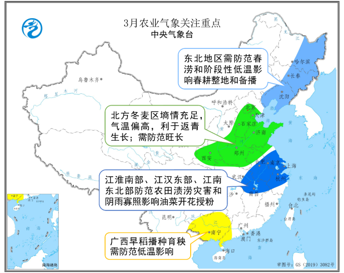 3月气象条件利于夏粮生产和春播防范东北春涝广西低温西南干旱