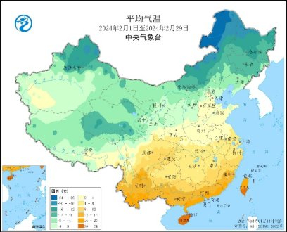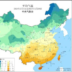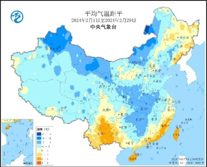 图1全国平均气温与气温距平图(2024年2月1日至2月29日)