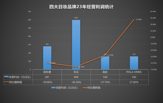 高丝集团方面,2023年销售额为3004亿日元,同比增长3.9%,但经营利润为160亿日元,同比下降27.7%。其中,包括中国和韩国在内的亚太市场销售额为527亿日元,同比下滑34.7%,旅游零售渠道销售额265亿日元,几近腰斩。