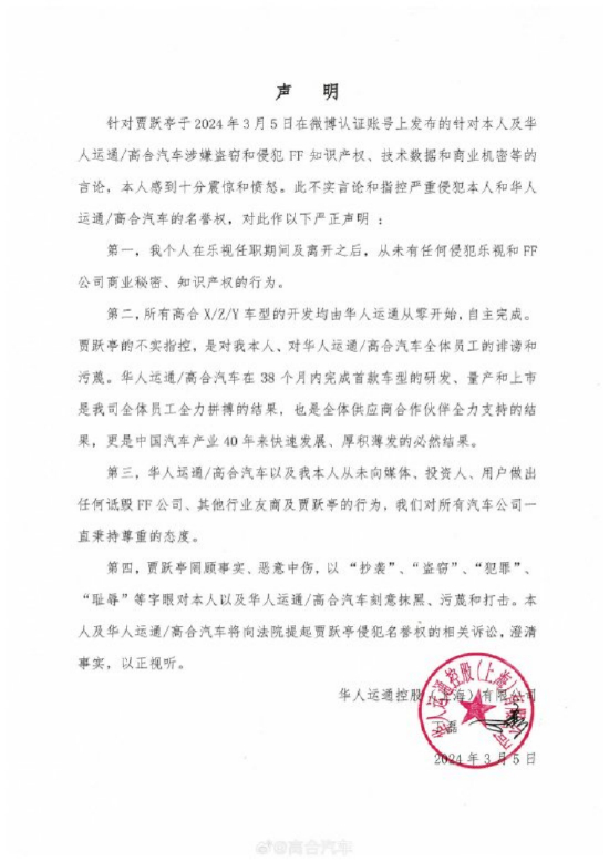 他通过一纸诉状将丁磊和他身后的高合汽车告上法院,称丁磊窃取FF知识产权、技术数据和商业机密等,意图在高合病危中“要它的命”。但很快,丁磊否认了指控。