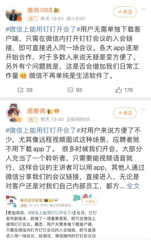 此次更新也引发了网友热议,众多网友纷纷表示“太方便了”,认为此举有效打通了钉钉会议与微信生态之间的壁垒,提升了用户体验。